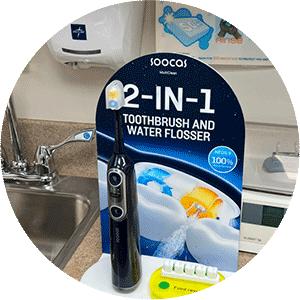 - Built-in timer: 2 min brushing + 1 min flossing, with 3-sec reminders