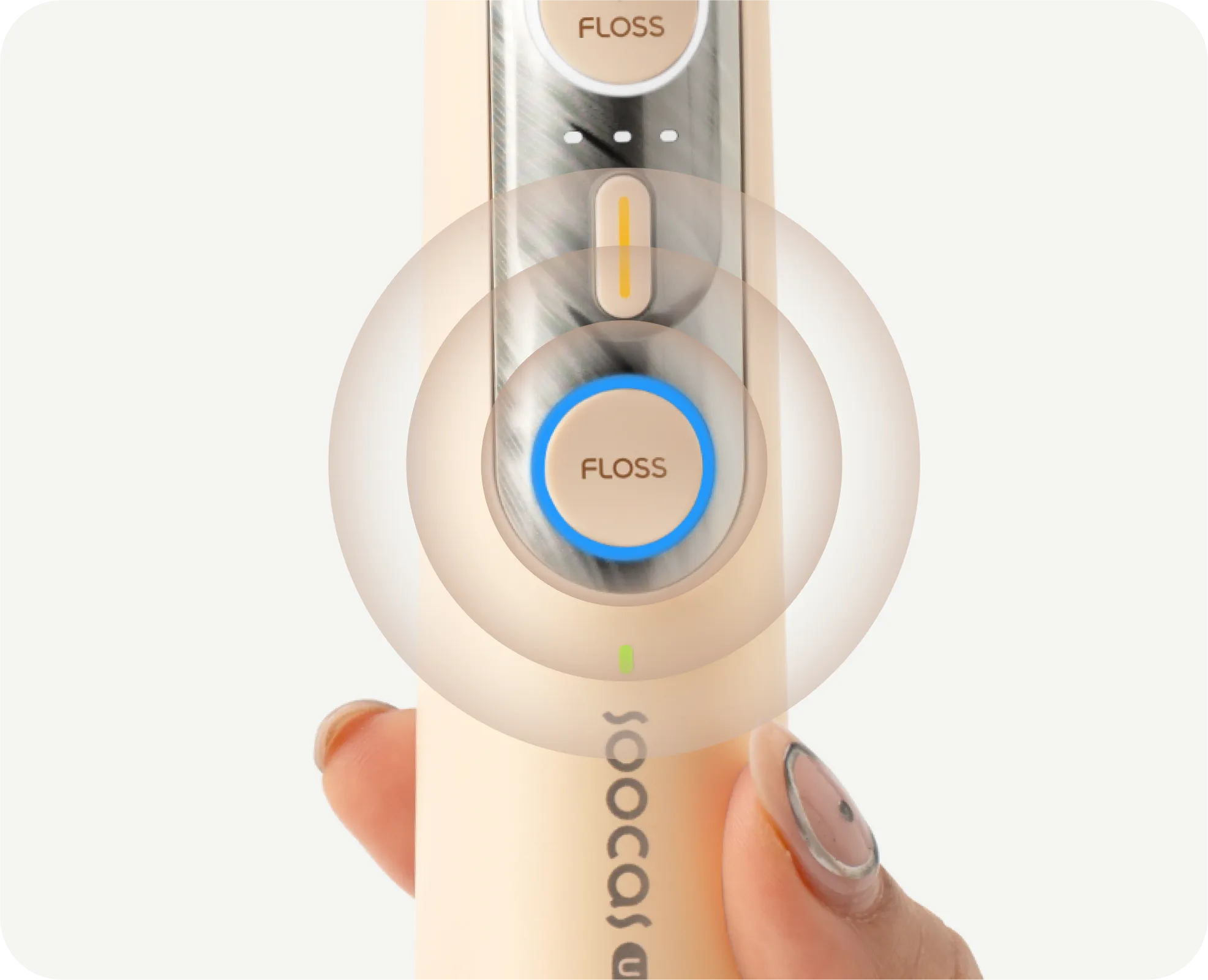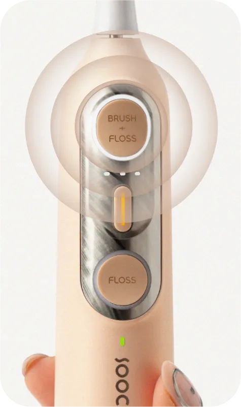 • Built-in timer: 2 min brushing + 1 min flossing, with 30-sec reminders